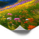 En fält av gult, rosa och lila blommor blandas med gräset i lush grönt och skapar en fantastisk visning av färg och skönhet. Hela scenen är en fest för sinnet, firande för naturens bostad och livets rikedom. Hela scenen är en firande av naturens skönhet och komplexitet, och den harmoni som kan uppnås när människor existerar sida vid sida med naturen.