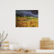Fälten av Vincent van Gogh är en vintage fin konst post-impressionistisk landskapsnaturmålning. En mörk och stormig natt himmel över fält av vete på en gård. Molnen virvlar runt för regnstormen.