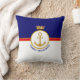 Eleganta familjetraditioner gyllene ankare och krona med röd bälte på marinblå och vit kastkudde. Text och ikoner kan anpassas.