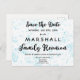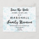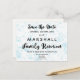 Faux blue-färgstänk-bakgrund för detta Spara datum för ett familjeåterföreningsvykort. Se mer på Zigglets här på Zazzle.