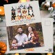 En modern utformning i Happy halloween med anpassningsbarnas fotobild och stora hundraser; Rottweiler, Pit-tjur, Labradoodle eller Goldendoodle, och en Hund i Bernese Mountain, omgiven av söta pumpor, en fladdermus och grått-ballonger. Önskar familj och vänner i Happy halloween med detta personlig kort.