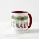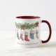 Mugg har elva julklappar som hänger under en festlig helgdag. Du kan anpassa lagren med 11 olika namn. Perfekt för en stor familj eller en familj med många husdjur eller för en mor- eller farförälder med många barnbarn.