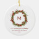 En elegant, jultomas greenery-familjens ursprungliga prydnadsämne. Den här julgran-prydnaden har en grön krans med gräs-koner och bär och en början mitten i kranen. All text på kortet kan anpassas för att skapa perfekt-familjens julgran-prydnadsnamn.