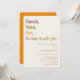 En varm och minimal tackgivningsdesign med djärv rustik typografi i jordnära hösttoner. Perfekt för sammankomster med familj och vänner, mysiga middagar eller avslappnade högtidsfiranden. Den enkla layouten håller fokus på orden — familj, skratt och naturligtvis för mycket paj.