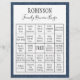 Njut av att spela den här roligten, bingo-spel vid nästa familjeåterförening. Hitta matcherna från din egen familj för att få mycket roligt!! Blå fuktig bakgrund.