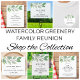 Den här snyggten och det moderna vykortet för familjeåterförening är dekorerat med vattenfärgsgröna grejer. Enkelt anpassade. Ursprunglig vattenfärg © Michele Davies.