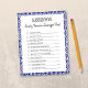 Njut av att spela den här roligten, jakt på jakt på jakt på din nästa familjeåterförening. Hitta familjerelaterade matchningar till objekt i listan och ha mycket roligt!! Bakgrund till temat blå och vit dämpare.
