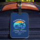 Familjeåterförening Sommarboden Handflatan Träd Sol Retro Stil Blue Luggage Tag. Underbar för familjeåterföreningssemester från camping på stranden till en båtkryssning. Anpassa med din familj namn, plats, år eller datum och mycket annat.