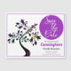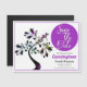 Högerna på den här familjeåterföreningsdesignen "Save the Date" (Spara datum) med magnetkort har ett modernt träd med multifärgad indrag på blommorna. Högerna av meddelandet innehåller mallinformationen. Lila gräns och namn färg motsvarar insatsen färg i träd. Anpassa mallinformationen, ta bort text och/eller klicka på anpassa för att välja ett teckensnitt färg, storlekt och stil som du vill använda. Du kan beställa det här magnetkortet med kuvert så att det är redo för utskick eller beställning utan kuvert.