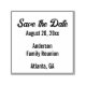 "Spara datum" visas i ett skript för elegant högst upp. Det finns fyra linjer visning text under skriptet. Du kan redigera texten för att visa familjeåterföreningens datum, händelse namn och plats.