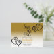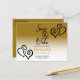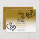 Familjemeddelandet "Spara datum" för återförening innehåller svarta länkade hjärtan på två hörn. Information om meddelandemallen springa mellan hjärtan. Kortet bak färg överensstämmer med framsidan. Anpassa mallinformationen på framsidan och baksidan, ta bort text och/eller klicka på anpassa för att välja det typsnitt färg, storlekt och stil som du föredrar.