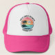 Rolig anpassad truckerhatt för att fira din tropiska semester, familjeåterträff, svensexa eller möhippa, etc. Funktioner livfull strandscen med palmer. Ett perfekt sätt att minnas den fantastiska resan eller festen. Anpassa resa/händelse/familjenamn, plats och år.