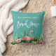 Modern penselskript, tropisk Blommigt med vattenfärg med Rosa Flamingo Family Namn Beach House Dekorativ kudde