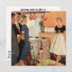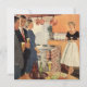 Lätt att anpassa familjefest inbjudan. Lägg bara till din information! Om du vill ändra bakgrundsfärg eller typsnitt kan du klicka dig vidare för att få tillgång till alla designverktyg. Många teckensnitt att välja mellan! Vintageillustration mat och dryck köksbild med en festscen där människor dricker öl, äter aptitretare och umgås i köket. Rolig retro 50-tals familjedesign!