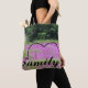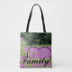 Familjen ord är inkorporerad i ett hjärtband mot en fält av rosa vilda blommor på en sida över hela den tryckta totepåsen