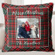 Familjefoto, Rustic-julparet Dekorativ kudde. Modern röd och grönt jul Helgdag Plade med personlig familj namn.