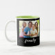 Byt ut våra två mallfoton mot dina favoritfotominnen i familjen som finns på det vackra svarta och grönt kaffet mugg mot grafisk typografi som säger ord-familjen. Använda ditt nyfödda baby bilder eller ett minne av en roligt resa. Designad som en kontorsgåva eller personlig gåva.