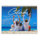 Modern och trendig fotokalender med handskriven vit typografi. Anpassa med bilder och anpassningsbar. När du byter ut provexemplaret bilder för varje månad visas det automatiskt i ett rutnät på baksidan. Perfekt till dina familjemedlemmar för att påbörja det nya året.