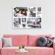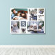 Visa dina familje- eller bröllopsminnen med denna vackra fotokollageduk i vitt med en gråblå fyrkant bakom ditt monogram. Designen inkluderar plats för 7 fotografier: 2 stora horisontella, 2 medelstora vertikala och 3 mindre fyrkantiga i Instagram-stil. Lägg till din initial i kursiv stil. De enkla mallarna gör det enkelt att anpassa. "Anpassa ytterligare" för att göra mer detaljerade ändringar.