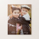 Det här 11 x 14-familjens fotopussel gör en unik personlig och roligt för familjer att leka med. Designen innehåller ett foto med underordnade som du kan byta till eget. Nära grund finns namn i en modern handskriven manustypografi som du kan anpassa. Designad av konstnären ©Susan Coffey...