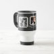 Anpassningsbarnas fotoresemugg (eller kaffe mugg) i mörk grått med tre fotomallar och två linjer anpassningsbar text. Anpassa med två linjer vit text under mittfotot. Inkludera bilder från barn, fru (eller make), hund, husdjur osv. Även om denna gåva skulle kunna ges till vem som helst, är den en trevlig gåva till en make, far, morbror, bror eller farfar.