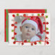 Lägg till foto från din familj till det här söt rött julkortet och grönten gränsade till Julkortet, och du har familjens namn på baksidan i anpassningsområdet.