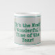 Njut av dina favoritdrycker i helgdag i stil med den här vattenfärgen mugg. Den har en festlig grönt och glad smyckning och gör perfekt säsong-gåva eller mysiga tillägg till ditt kök. Anpassa med namn eller ett år för att göra det till din. Designad med den festliga frasen "Det är årets mest underbara tid!" i vintage-inspirerad grönt för Speciell elit och rik-helgdag (#01796f) som beskrivs i djup grönt (#005e20). jultoma mugg, helgdag kaffe kopp, festköksartiklar, personlig julklapp, vattenskärtskristmas-design, helgdag, dricksprogram