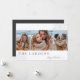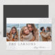 Skicka semesterhälsningar till vänner och familj i chic stil med våra fotosamlingskort för elegant. Designat för att rymma tre av dina favoritfoton som arrangeras sida vid sida, ger det här chicen ett minimalistiskt kort till din familj namn i en statisk grått-stil med "God jul" i ett vanligt klassiskt skript bredvid året. Ett par blek-snöflingsilhuetter i hörnen kompletterar denna moderna, minimala utformning.