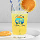 Familjens Namn Beach House Summer Handflatan Träd Sunset Retro Stil dricksglas. Anpassa med din familj namn, plats och mycket annat. Blå text i flottan eller välj färg.