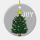 Håll Julgran dekorationen i gott om att anpassa sig till Familjens Namn och Familjens fastställda datum under det röda vita stripade candy cane med God jul skrivet i vit text. Omvänd sida har Joy skrivit under söt som dekorerade Julgran med gult star, polkagrisar, prydnadsföremål och pepparkaksgubbe. Originalteckning © TamiraZDesigns.
