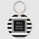 Snyggt trendig personlig initialer monogram-nyckelkedja med svart och vitt stripe mönster med initialer och namn med ditt fastställda datum angivet i en svart ruta med en klassisk vit text. Designad av Thisisnotme©