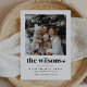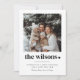 Denna julkortdesign visar upp en ren och modern layout med ett fyrkantigt fotoutrymme för din familjs bild. Under fotot visas ditt familjenamn elegant med en liten hjärtdetalj som lägger till en touch av värme. Julhälsningar är vackert placerade under i två kontrasterande teckensnitt och skapar en stilren men minimalistisk säsongsrelaterad hälsning.