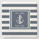 En elegant personlig nautisk design med ankare och marinblå och vita ränder med din familjs eller båtens namn och etableringsdatum i en fyrkant med marinblå ram. Designad av Thisisnotme©