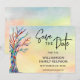 Be din familj att spara datumet för din familjeåterförening med den här snyggten och det färgstarka annonskortet. Den har en familj träd i regnbåge i färg på en vattenfärgsbakgrund. Enkelt anpassade. Original Mosaic & Watercolor © Michele Davies.