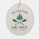 Ett vackert tvåsidigt, modernt, strålande keramiskt prydnadsämne, med din familj namn och sjö hus, hytt, stuga eller annan önskad text och dess fastställda datum, allt i stil typografi i orustik. Anpassad design har ett unikt blått oljefartyg, paddlar och gräs träd i mjuk grönt. Designkrämbasen färg är lätt att anpassade för att matcha din nuvarande dekoration. Om du vill se fler design som denna kan du besöka min butik här på "Zazzle.com/Rustic_Charm". Tack.
