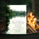 Denna inbjudningskort för familjesammanträff vid sjön för en helg lång camping (eller lyx-camping!) firande har avlägsna barrträd och klippformationer som återspeglas på ytan av en lugn, lätt krusad vattenmassa under en mulen himmel ur en roddares synvinkel som sitter i en kajak på vattnet | Bilden skapades från mitt eget personliga foto på kajakåkning | Del av katzdzynes’ Rustic Lakeside familjesammanträff / företagsretreat-samling >>> https://www.zazzle.com/collections/119413093835947250