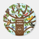 Partfavorer och minnesgåvor för familjesammanförande med träd fyllt med roliga fåglar. Redigera texten för att lägga till år och familjenamn.