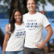 Rolig anpassningsbar familjeåterträff t-shirt med ordkonst design med matchande geometriska former som är länkade till varandra. Framsidan har denna designstil med varje form som innehåller en bokstav för att stava ut FAMILY REUNION med versaler och har en mall för familjens namn och platsen för återträffen i marinblått. Baksidan har FAMILY REUNION & året i geometriska former och ett område för anpassningsbar text. Som det är nu står det "Kinship is life's greatest blessing", men du kan ändra detta till en text som du väljer. Du kan anpassa den med ditt familjevalspråk, eller kanske något som passar den som bär den unikt. Som bilden visar växlar formerna mellan två trendiga nyanser av ljust och mörkt blått, men ALLA färger i denna design kan anpassas, inklusive de geometriska formerna OCH textens färg inuti dem, vilket gör denna design bra för valfri t-shirt som du kan välja. Använd Zazzles meddelandefunktion för