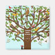 Idé för familjesammankomst rädda-datum eller presentgåva, med ett träd med fåglar, ett hjärta och en plats för att lägga till ditt familjenamn och år.