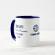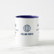 Anpassa denna familjesammankomstskopp med ditt familjenamn, plats, år och arv/arvslinje. Perfekt som minnessak för familjer som vill skapa minnen tillsammans. Den moderna typografin i kombination med en elegant skrivstil och designelementen (en jordglob och stjärnor) är i navyblått.