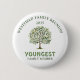 Familjesammanträde Skogsträd Yngsta Familjemedlem Pris Minnesknapp... Den akvarellmålade familjeträdsdesignen med blad i grönt och mjukt gult ger en naturlig skogsprofil åt dina familjesammanträdesaccessoarer. Denna knapp är utformad som ett pris till vinnaren av "Yngsta familjemedlem" som deltar i årets sammanträde. All exempeltext kan enkelt revideras med dina egna detaljer i personaliseringsmallen.