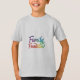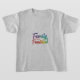 T-shirten har texten "Family Foundation" i en vibrerande regnbågsgradient. Brev är fetstilt och kurva något över skjortans centrum, vilket skapar en dynamisk och öga-fångstdesign.