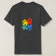 Bilden du skickade till mig visar en samling pussel delarare i olika ljusa färger . Bakgrunden är ett neutralt grått. Tre av pusslet delar har ord på dem. Det översta lämnat pusslet biet har ord "FAMILY" skrivet på det i vitt huvudstad brev. Mitten-pusslet biet har en vit Omega-symbol (Ω) på sig. Det grund lämnat pusslet biet har ord "TRO" skrivet på det i vit huvudstad brev. Texten "ME" är skriven i ett kursivt teckensnitt, vit och placerad mitt i pusslet ovanför Omega-symbolen.
