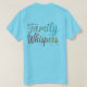 T-shirt-skjortan med "Family Whispers"-symbolen har en svärd med flera färgader. Färg ordnas i en övertoningseffekt som skapar djup och rörelse. Den totala estetien är lekfull och öga-fångande, vilket återspeglar den värme och den koppling som är förknippad med familjen. Utformningen är perfekt för alla som tittar att uttrycka sin kärlek och uppskattning för sina nära och kära.
