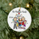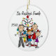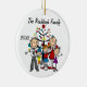 Julen för en minnessak för nätt runda semestrar den keramiska prydnadsärdrag en stick figurpappa, mamman, två pojkar i baseballmössor, en flicka i en purpurfärgad klänning och familjkatten framme av den dekorerade julgranen och områdena var du kan tillfoga text däribland det strömåret och efternamn. Denna är en förtjusande gåva för att någon familj ska fira minnet av året!