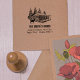 Denna "Cabin"-gummi i frimärke har en hytt med familjen namn och adress.