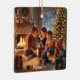Celebrate the magic of Christmas with this heartwarming family ornament featuring a cozy holiday living room, glowing Christmas lights, and an adorable Border Collie at the center of the moment.