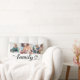 Den moderna och snyggt anpassningsbarna i ländryggen dekorativ kudde har en fotokollage med tre (3) favoritfoton i fyrkantiga Instagram stil med en enkel och minimal svart "familje"-typografi som innehåller blomning i eleganten och hjärtedetaljer. Svartvitt färg kan ändras.