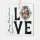 Upptäck skönheten hos en svart och vit dodle-julprydnad, där "kärlek" inte bara är en ord utan en känsla, där ditt uppskattade familjefoto ersätter "O". Elegant inskriven i en handdragen ram, ord God jul, ditt namn och året. En tidlös nyckelroll som gör att du får en aning av kärlek till ditt festliga bedrägeri.