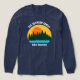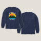Beautiful family lake vacation long sleeve t-shirts featuring the pretty blue waters under the forest of trees and cool orange sunset. Cute camping trip matching tees for your nature outing or wilderness group.